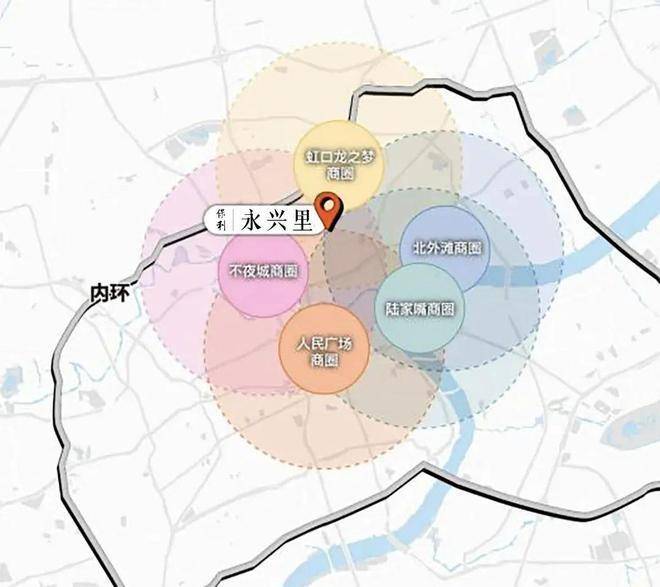 约3.5KM(百度直线距离)内苏河湾、人民广场、外滩、陆家嘴、新天地、四川北路、北外滩、虹口龙之梦、大宁商圈,中兴路板块约3万方公园社交型商业(规划)环绕,多元业态形成精致、时尚、生态融合的活力街区。